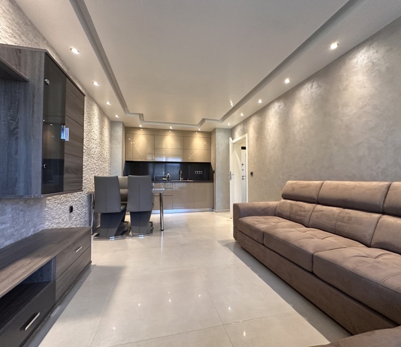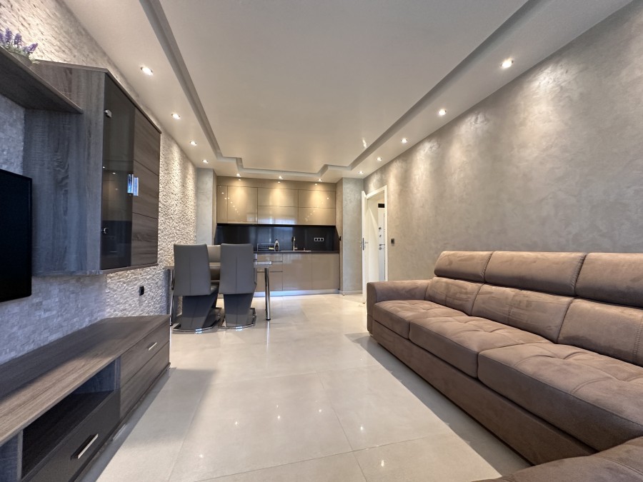 Luxury 1 BED apartment, 61.5 sq.m., in Angelika complex, Sveti Vlas We offer for sale a luxurious apartment with mountain views in town of Sveti Vlas, within 400 m to the sea. The apartment has an area of 61.53 sq.m. square meters and is located on the 5th floor. The apartment consists of: an entrance hall, a stylishly furnished living room with a kitchenette with a terrace, one bedroom, a bathroom with a toilet and a shower cabin. The apartment is fully furnished to an excellent standard, with high quality furniture is and ready to move in or to be rented out. “Angelika” complex has: round-the-clock security, video surveillance, limited access, technical support, maintenance of common areas, landscaped areas, parking, pool with sunbeds around it, children”s corner, etc. Annual maintenance fee – 8 EUR/sq.m. The building has an Act. 16. The complex is located near the sea (400 meters from the beach). There is a well-built infrastructure around the complex. Nearby there are: a large supermarket, shops, pharmacy, restaurants, fast food places, beach, amusement park and other entertainment.