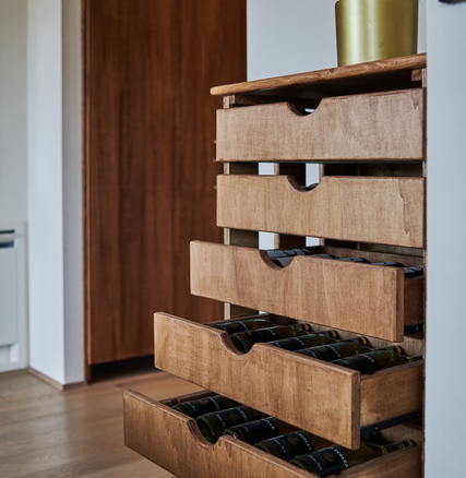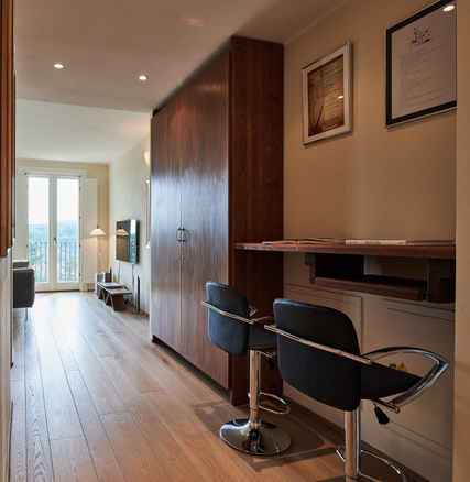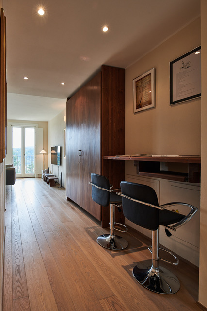 The WiFi-equipped apartment is located on the second floor of La Terrazza II, a skillfully restored building that now forms the central body of the hamlet. The flat, with complete air conditioning for the summer heat and radiant floor heating for winter, has been furnished in contemporary style by high-end designer furniture from Florence and a carpentry artisan master from Montaione. A lift serving all the apartments in the complex has been installed in the ample, light-filled entrance hall with a large skylight.