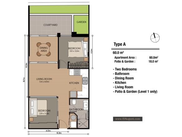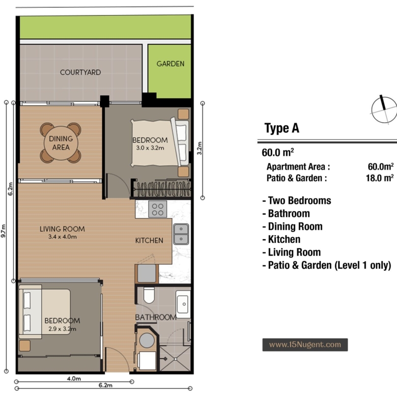 118 2 Bedroom 1 Bathroom + Courtyard & 1 Single Carpark AU60 61.5m2 € 502,500