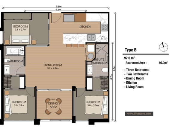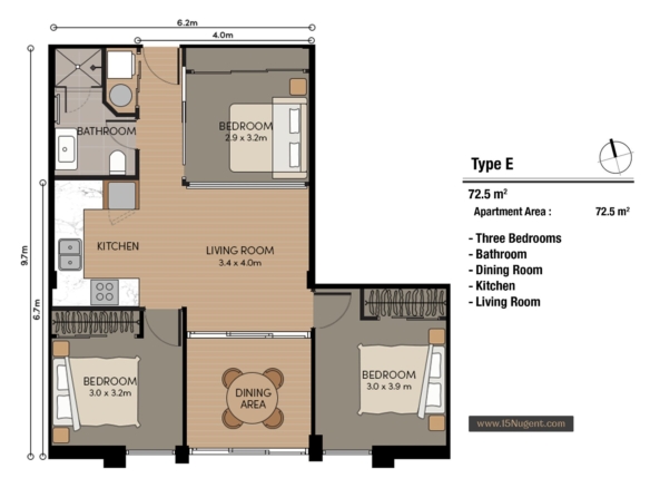 303 3 Bedroom 1 Bathroom + Flexi Room & 1 Single Carpark AU19 72.5m2 € 610,000