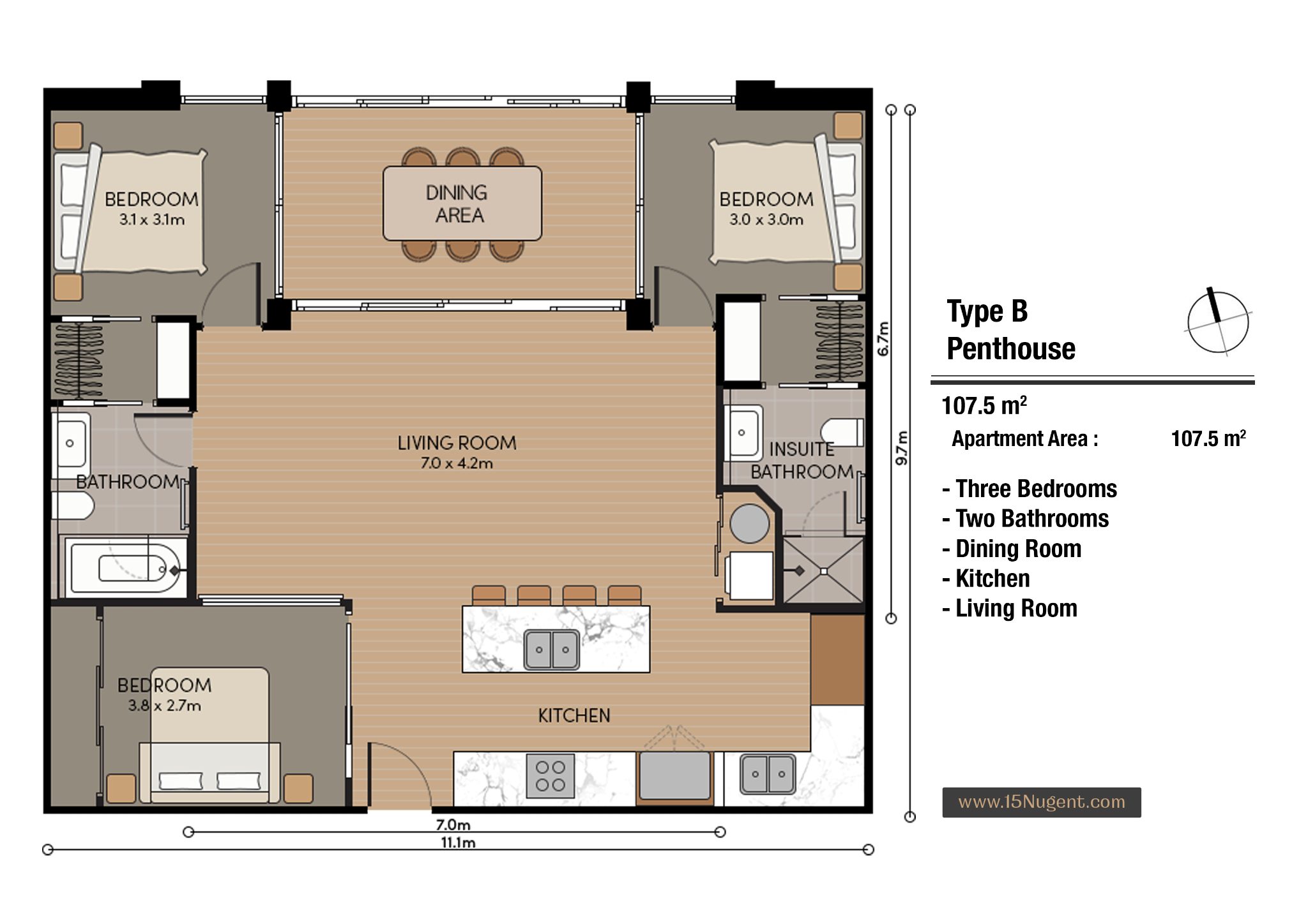 103 3 Bedroom 1 Bathroom + Courtyard & 1 Single Carpark AU3 72.5m2 € 607,500