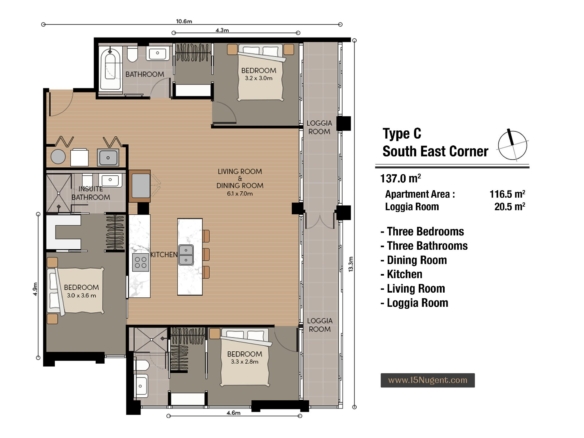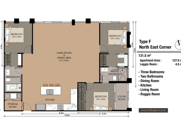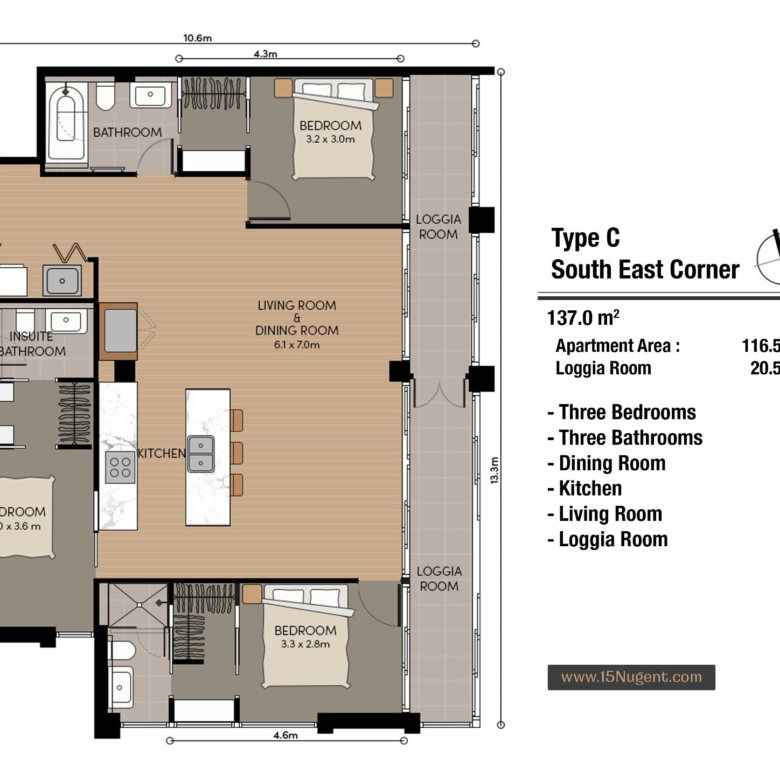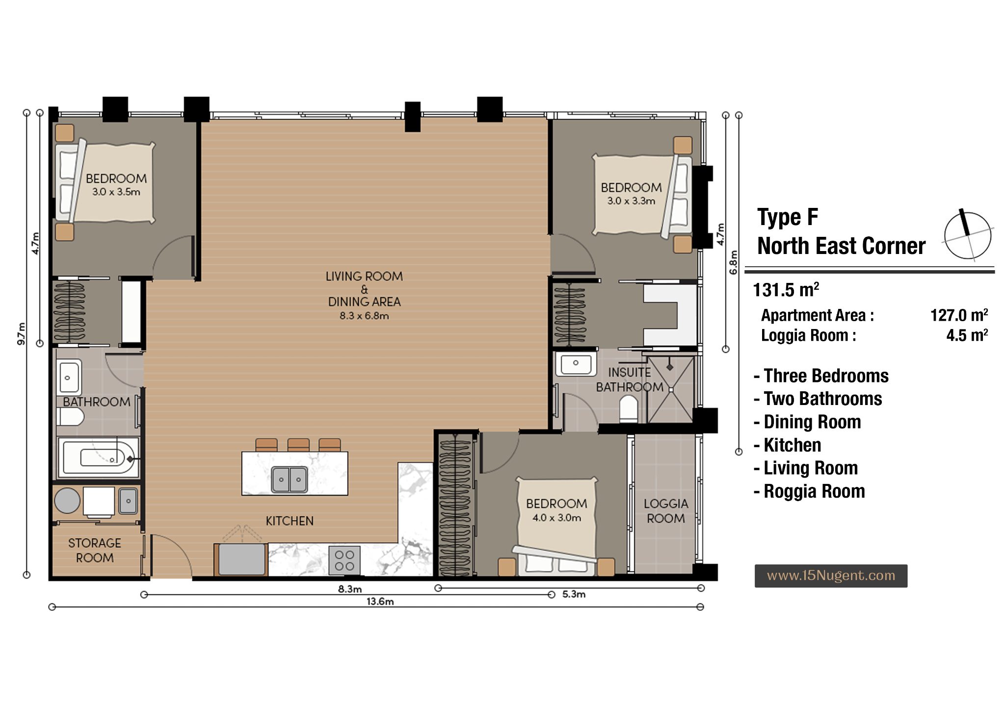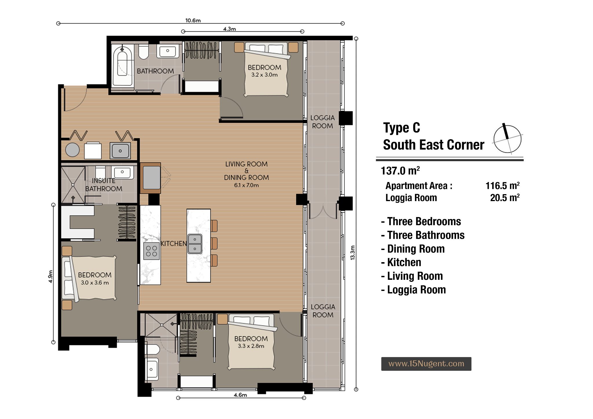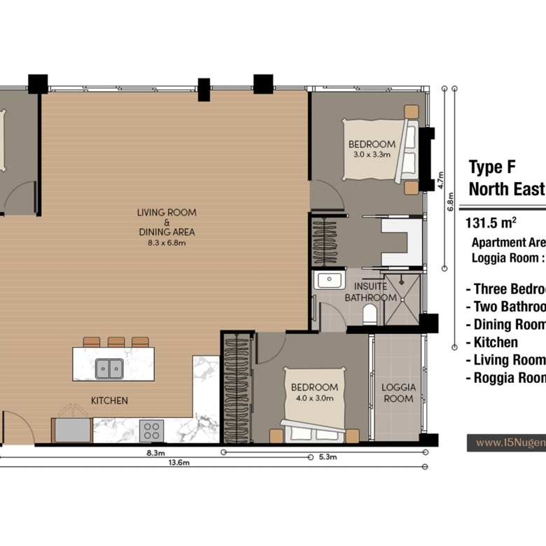 317 3 Bedroom 2 Bathroom + Balcony & 1 Single Carpark AU81 130.5m2 € 1,187,500