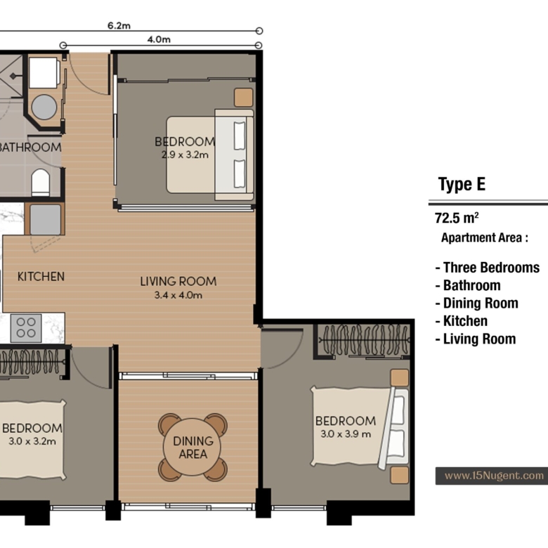 207 3 Bedroom 1 Bathroom + Flexi Room & 1 Single Carpark AU15 72.5m2 € 592,500