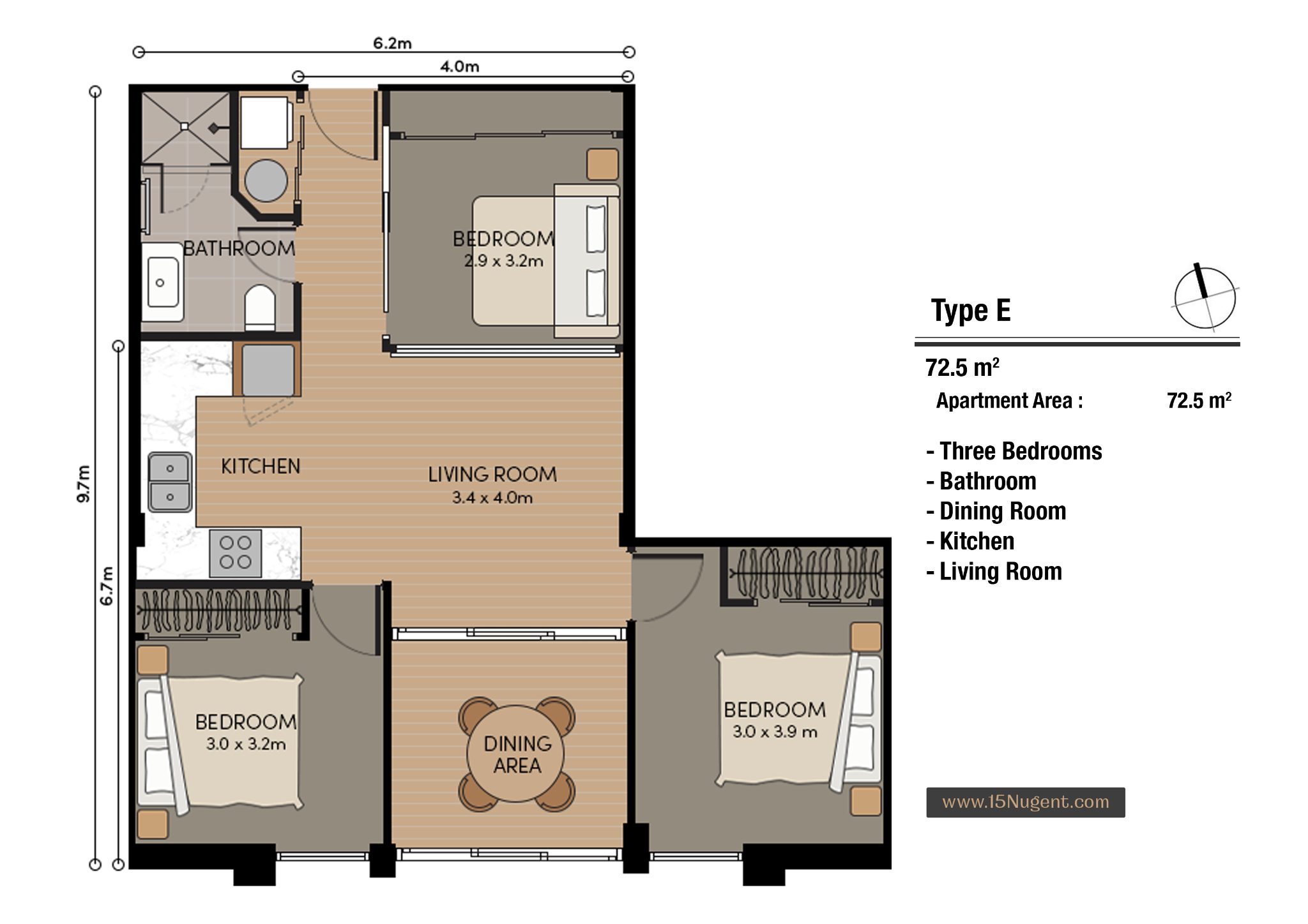307 3 Bedroom 1 Bathroom + Flexi Room & 1 Single Carpark AU23 72.5m2 € 612,500