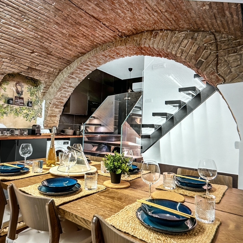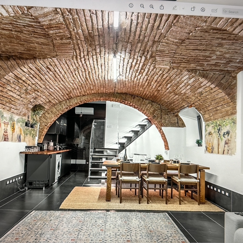 The meticulous 17th-century architectural recovery seamlessly integrates historical elements with modern living. The exposed red terracotta brick vaults, medieval frescoes from the Brera School of Art, and original coffered ceilings are unique and valuable features that add significant character and appeal to the property. The elegant black marble floors further enhance the sense of luxury and sophistication. Modern amenities such as video intercoms and toilets with electric water jets provide contemporary convenience. The installation of energy-efficient double-glazed windows and the use of energy-saving materials and systems contribute to both comfort and sustainability, despite the building’s historic energy certificate class E. The inclusion of electric underfloor heating on all three levels and eight split air conditioning units ensures year-round comfort for guests or occupants. The ventilated crawl space provides an added layer of structural integrity and helps to maintain a healthy indoor environment.