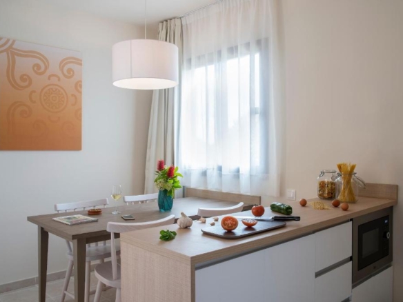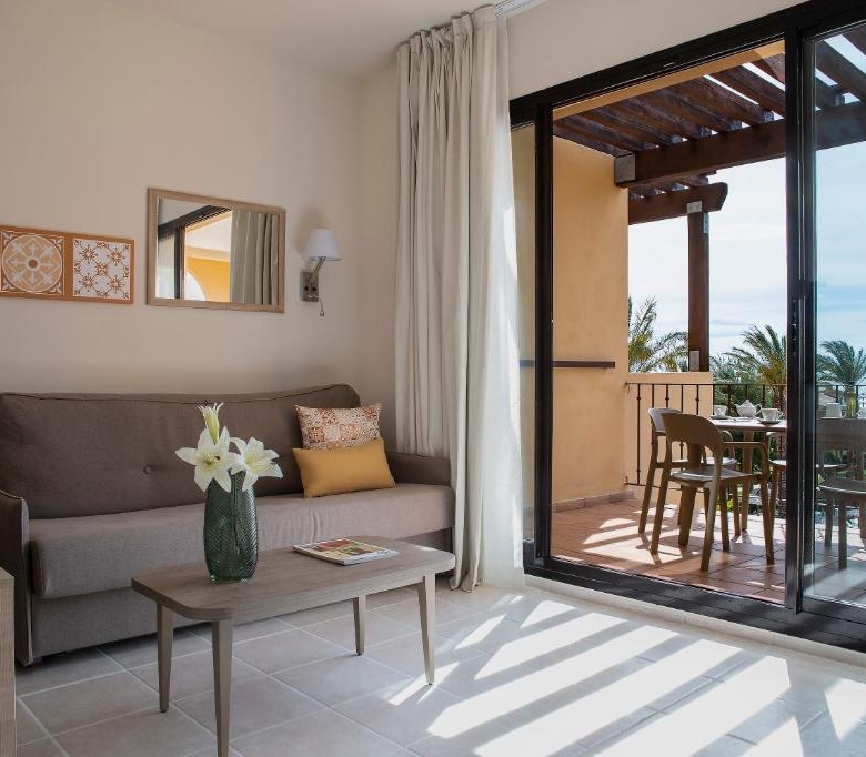 Live an experience in pure Mediterranean style! The apartments with Mediterranean architecture and soft tones, will transmit warmth and luminosity. All have a balcony or terrace, from where you can enjoy the views in an environment surrounded by palm trees and green gardens.