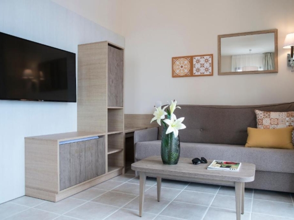 The Mediterranean-style apartments at the Bonavista Bonmont feature a furnished terrace or balcony. The kitchen area comes with a fridge, microwave and dishwasher; and a safe is available at an extra cost. Bed linen and a final cleaning service are included.