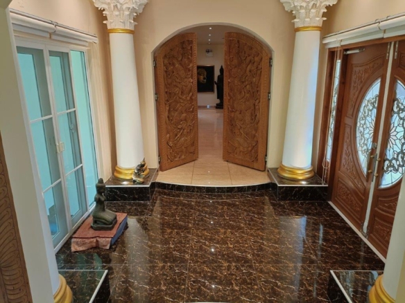 226 m2 net living space; add. 112 m2 storage room; pool-house roofed area 75 m2; pool roofed 90 m2; parking lot 160 m2 (car port 60 m2); private street 45 m length, teakwood pavilion 25 m2, Koi fish pond 15 m2. Gym could be easily changed to 2 more Bedrooms. A part of the storage room can also easily be changed to two additional roofed parking.