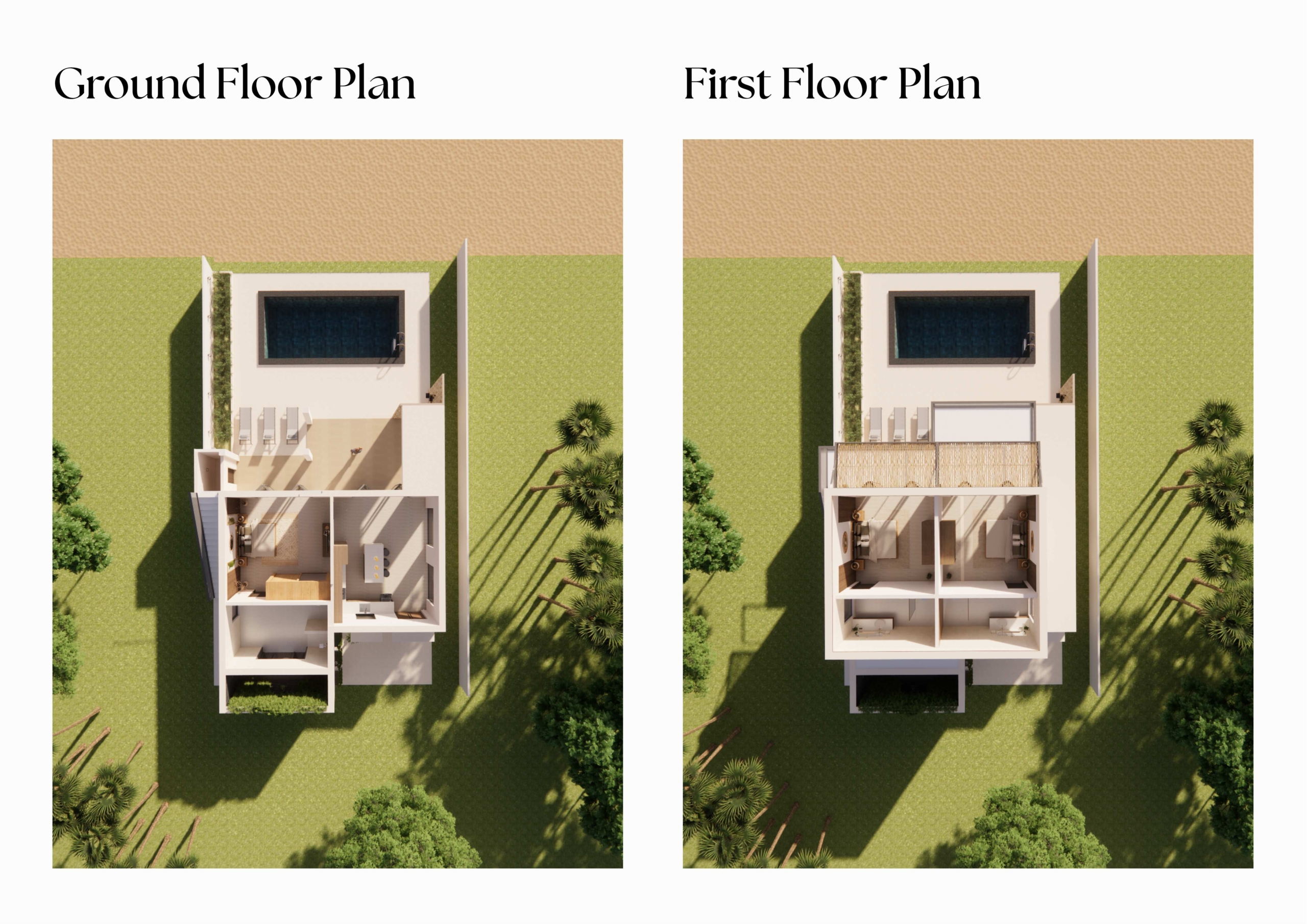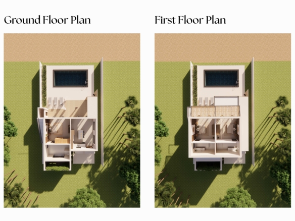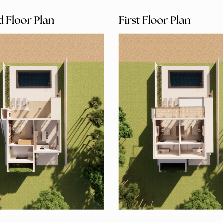 Imagine spacious living areas that open onto expansive terraces, offering breathtaking ocean views. The two bedrooms, each a private sanctuary, will be designed with relaxation in mind, featuring luxurious en-suite bathrooms and ample closet space. High-quality materials and finishes will be used throughout the villa, ensuring both durability and aesthetic appeal.