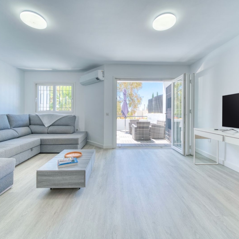 Discover an exceptional living experience in this fabulous townhouse/duplex apartment, perfectly situated within a secure, private community in the vibrant heart of Nueva Andalucía, Marbella. This property offers the ultimate blend of modern design, spacious living, and unparalleled convenience, making it an ideal choice for a permanent residence, a luxurious holiday home, or a shrewd rental investment. Having undergone a complete, high-end refurbishment in Q4 2023, this home is ready for you to move in and enjoy the quintessential Marbella lifestyle.