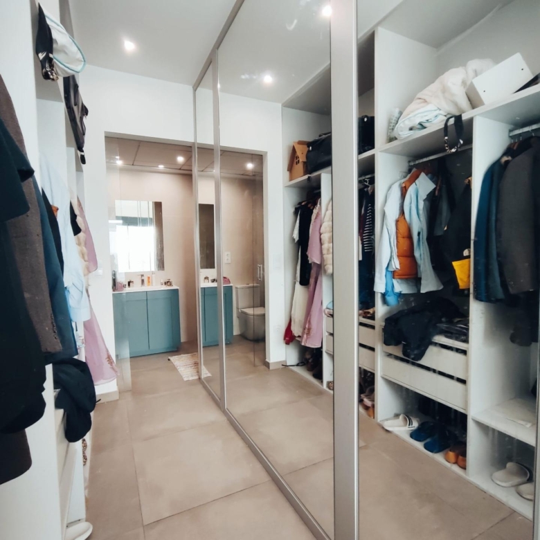 The villa’s thoughtfully-designed layout caters to a variety of lifestyles. Spread over two floors, with an additional spacious basement, the property offers ample room for relaxation, entertainment, and storage. The 73-square-meter main floor boasts an open-plan kitchen and dining room, perfect for fostering a sense of connection while entertaining guests or preparing meals. Modern and bright, this space is equipped with high-quality appliances and large windows that bathe the area in natural light, allowing the beauty of the garden and pool to seamlessly flow indoors.