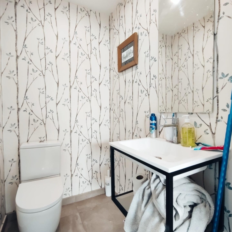 An internal wooden staircase leads to the peaceful second floor, encompassing 40 square meters of inviting space. Two large bedrooms, each equipped with a comfortable 90-centimeter bed and built-in wardrobes, offer a tranquil escape. A complete bathroom with a shower, sink, toilet, and storage caters to the needs of residents and guests alike.
