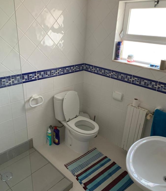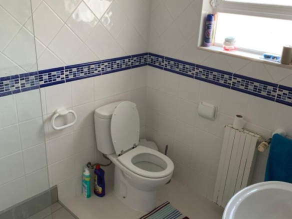 Inside areas; The villa has 3 bedrooms with 2 x on-suite bathrooms, both have walk-in showers, one with bidet. There is 3 large lounge dining areas which can be adapted and constructed if required to individual preferences. Floors are tiled and walls are white. Under the villa there is 2 large store rooms and a garage; so plenty of storage areas. The kitchen is black and white in colour and has grey tiled floors; fitted oven and hob.