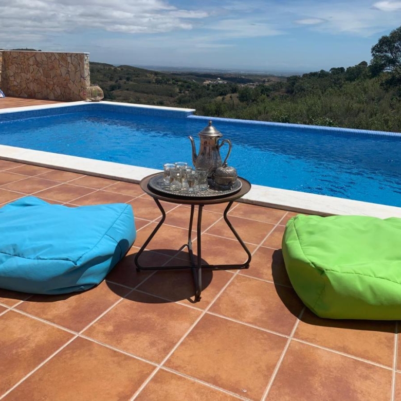 This stunning villa is located in the small village of Faz Fato, approximately 16km northeast of Tavira in eastern Algarve. The villa is situated in the hills which affords spectacular views of the sea and countryside areas; from Spain along the coast to Faro. Driving distance to Tavira and the nearest stunning 22km beach of Manta Rota is approximately 20 min.