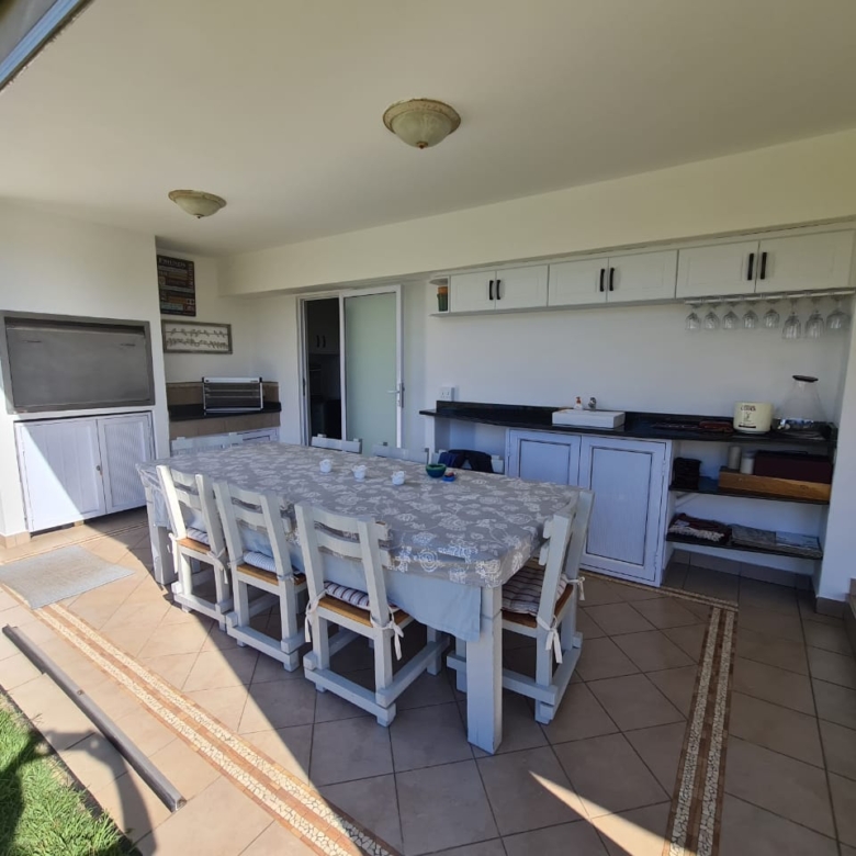 The villa provides a tranquil and private haven, with a fully enclosed patio featuring automated secure blinds for added privacy. Relax and unwind in the comfort of the patio, equipped with a stainless steel barbecue, a TV, and dining furniture – the perfect setting for alfresco dining and entertaining.