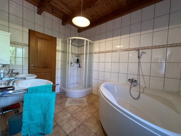 * High-End Amenities: The villa is equipped with modern conveniences, including a high-capacity solar system with battery storage, high-end appliances (washing machine, dryer, chest freezer), and heating and air-conditioning units on both floors.