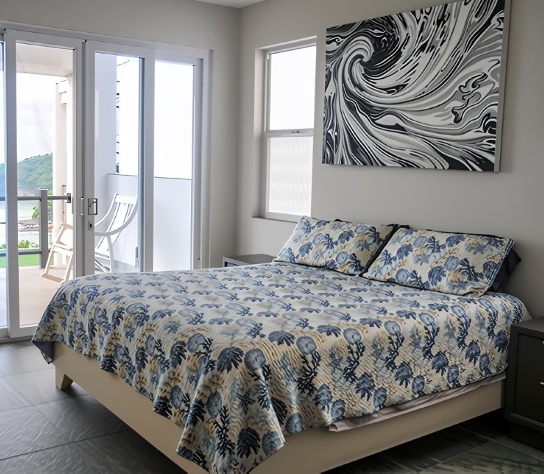 Each of the three bedrooms within Casa Siesta has been meticulously designed with comfort and tranquility in mind. The master suite is a true private oasis, offering not only generous space but also a private balcony where one can savor breathtaking ocean views, a spacious walk-in closet providing ample storage, and a luxurious en-suite bathroom complete with a deep soaking tub for ultimate relaxation and a separate glass-enclosed shower. The additional bedrooms are equally well-appointed, ensuring comfort and privacy for family members and guests alike.