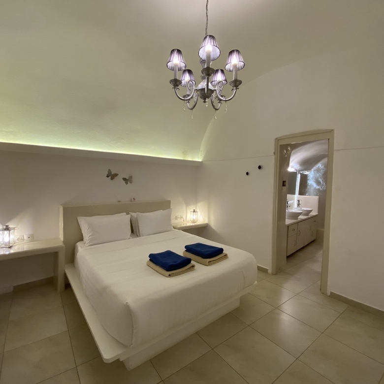 Step out onto your private terrace and be mesmerized by the uninterrupted expanse of the Caldera. Witness the iconic Santorini sunset, a nightly spectacle that paints the sky in fiery hues, reflecting off the whitewashed buildings below in a mesmerizing display. The volcanic landscape, a testament to the island’s dramatic history, unfolds before you, a constant reminder of Santorini’s unique beauty.