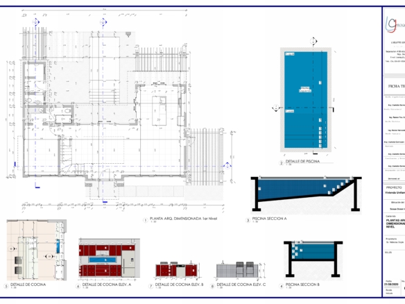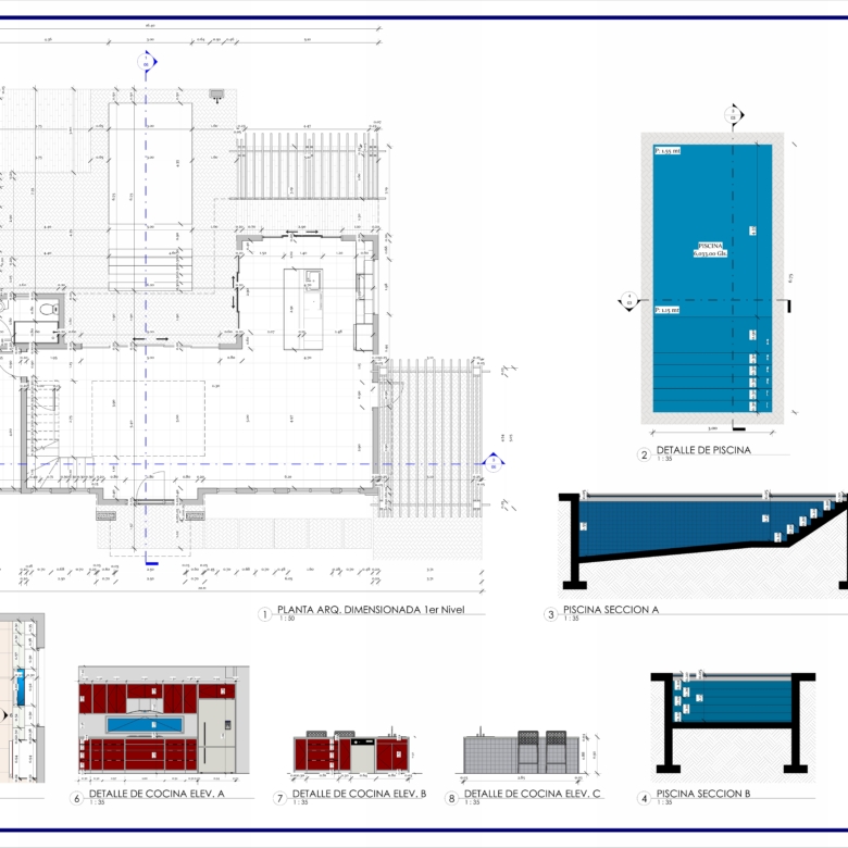 * Pool Area: The expansive pool area, paved with Corallina stone slabs, features a 7×3-meter swimming pool with Roman steps and changeable LED pool lighting.