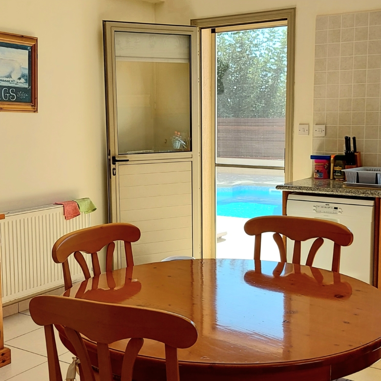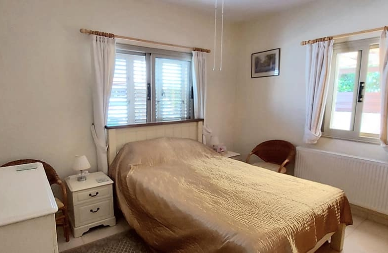 Air conditioned, gas central heating, double glazed plus many other extras. View from back, pool side, look over across green area, to the distance of paphos and sea.