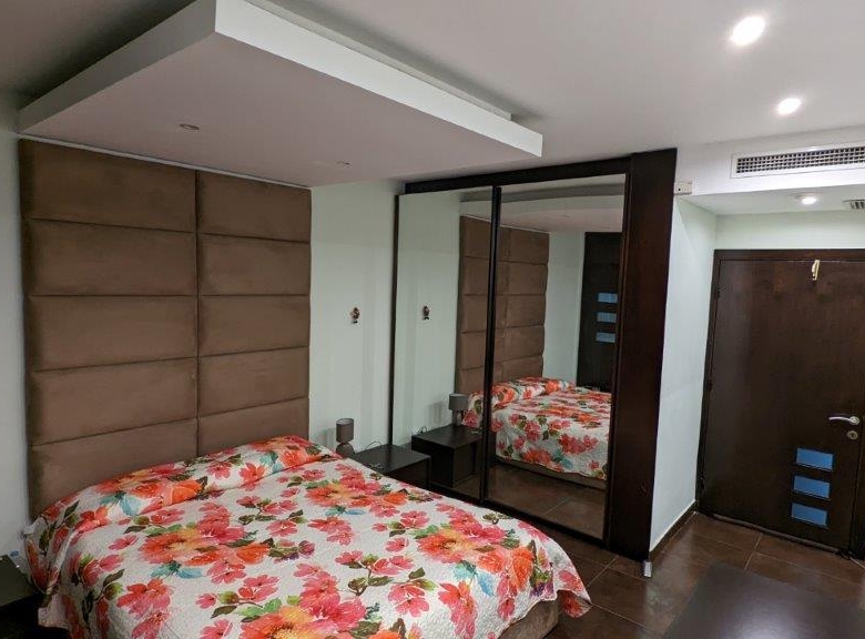 Immaculate two double bed apartment – Master with shower en-suite, second bathroom has a bath with jacuzzi – with beautiful sea views from both sides of the front balcony. The Mediterranean Sea and promenade are a couple of minutes walk away, and swimming off the rocks through the summer is normal!