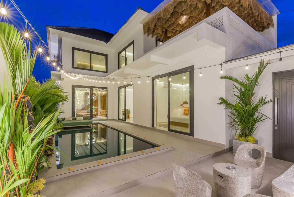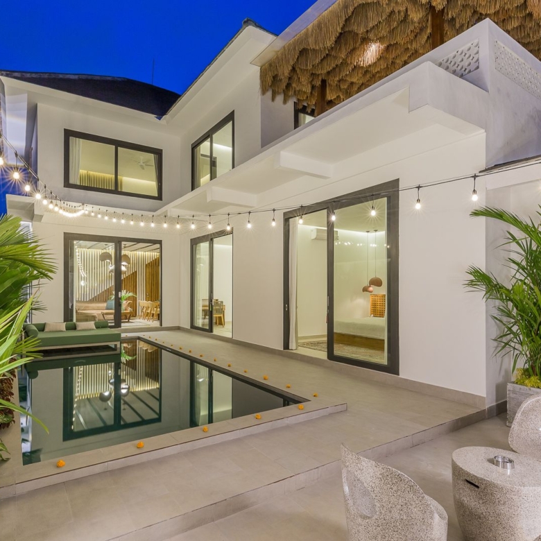 Set in Umalas’ most coveted area, this jade-accented designer villa blends sophistication and comfort with high-end materials and tailored interiors. Featuring three spacious bedrooms, rooftop sunset views, and a private garden pool, it delivers both lifestyle and income potential. Ideal for investors seeking a high-ROI villa near Berawa and Finns Beach Club.