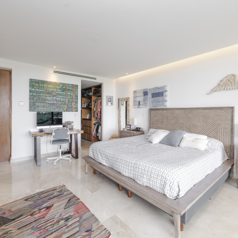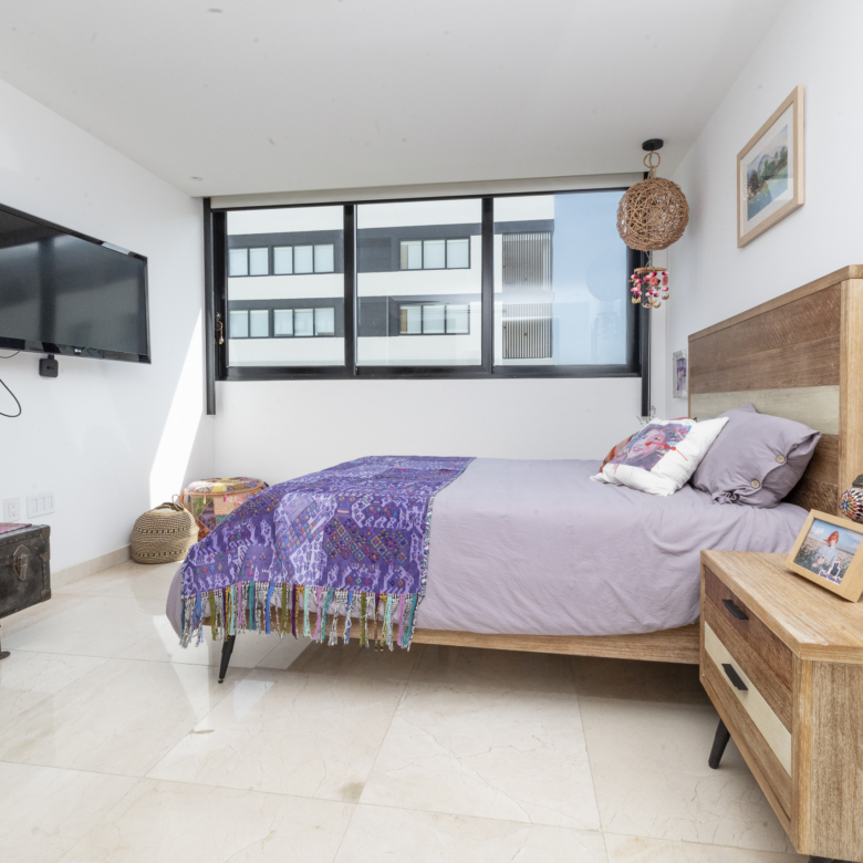 The apartment’s minimalist Mexican architecture reflects a commitment to sustainable living and design. The focus on natural light, open spaces, and harmonious design creates a healthy and inviting environment.