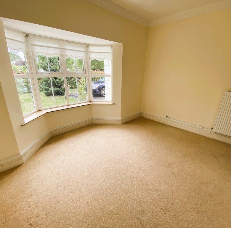 Carpet flooring, feature mantlepiece with gas fire, bay window, light fittings.