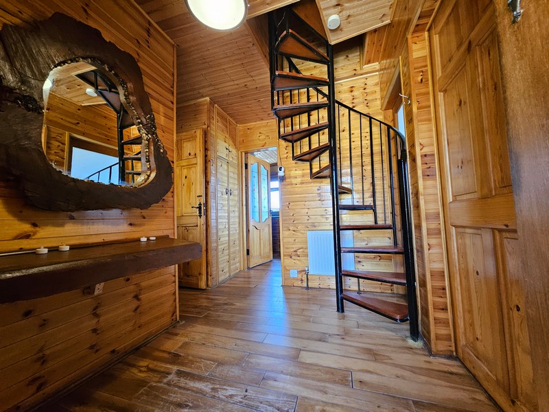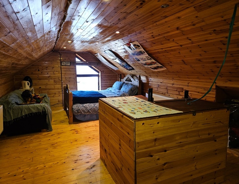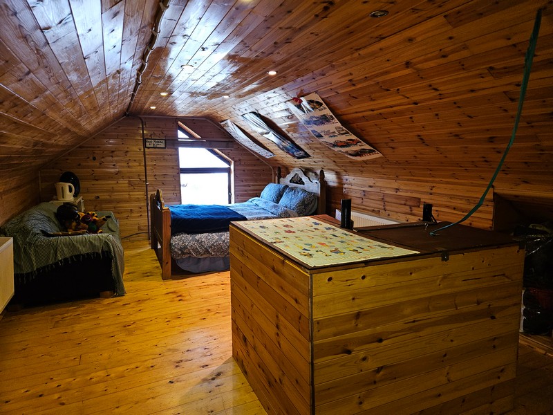 With a mix of both tiled and wooden flooring. Velux window looking out over magnificent views. Good quality tiling with WC, sink and shower area.