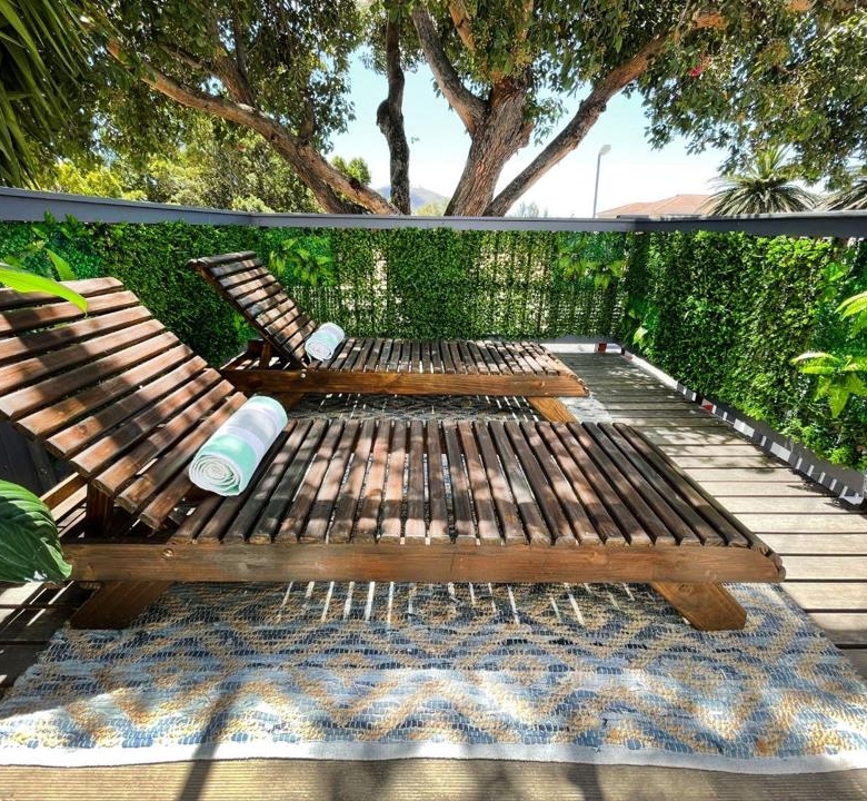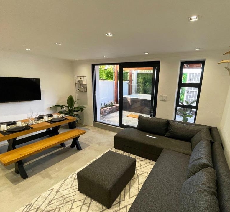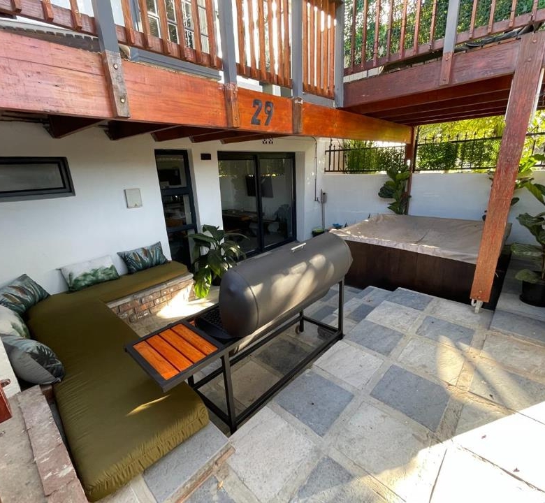 The property has a sun Deck and Jacuzzi which is wifi operated. The house also contains smart lights which can be controlled from an Alexa app. The house has an inverter which protects the house from loadshedding. The Inverter, furniture, guesthouse-linen, cutlery, tv’s and certain appliances are included in the sale which means there will be no interruption of business for the new owner. There is keyless entry via a pin-pad for the short-term rental side of the house making keyless check-ins possible for guests.