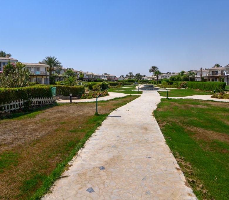 A beach front Villa with a large garden and sea view inside a resort in Al sokhna Red Sea.