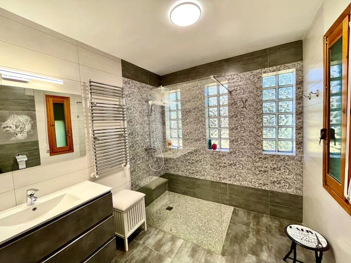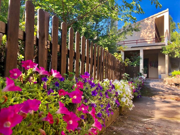 A traditional villa upgraded with all the necessary commodities. The house itself is surrounded by a series of gardens and a large swimming pool, all encompassed by a tall hedge, which provides peace and privacy to the grounds. There is a comfortable area to dine outside and a place dedicated for barbecues.