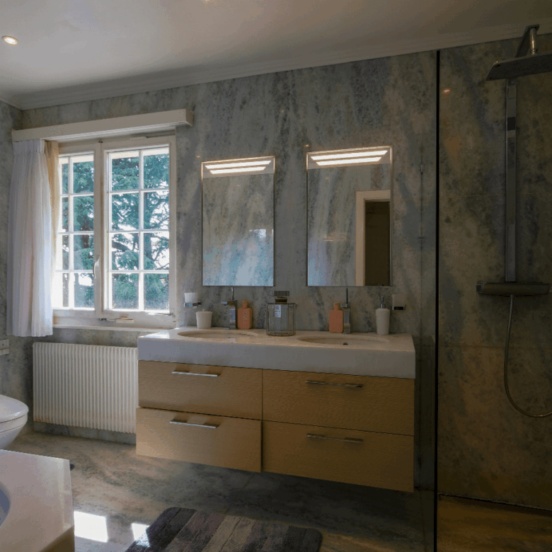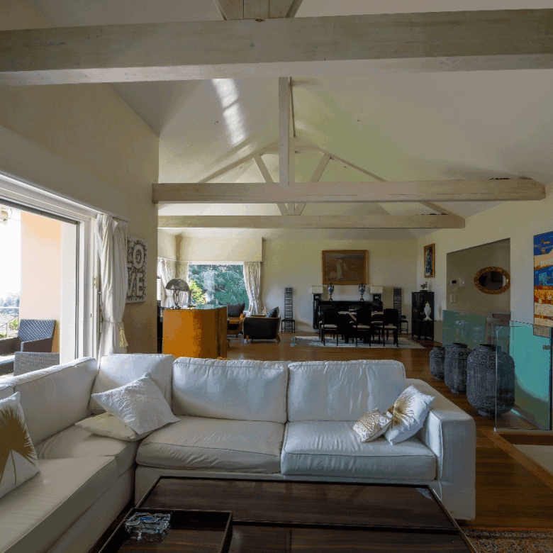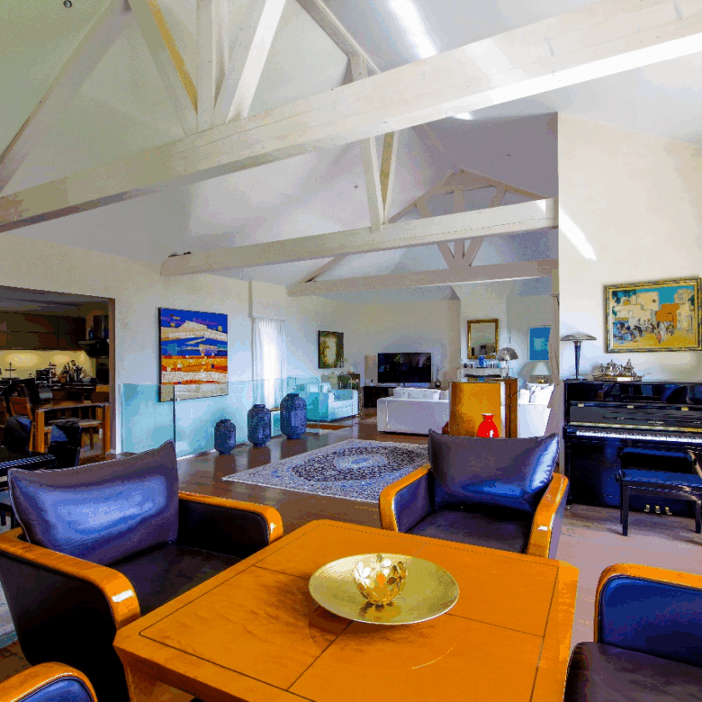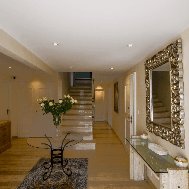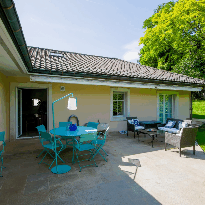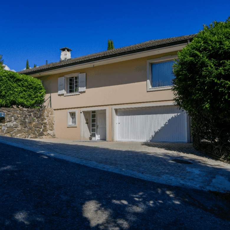 The villa has been meticulously renovated using only the highest quality materials, showcasing exquisite marble finishes, elegant parquet flooring, and energy-efficient double glazing throughout. A stunning transformation has been achieved in the main living area by removing the false ceiling and internal walls, revealing magnificent original wooden beams that create a wonderfully spacious and characterful environment. Large bay windows flood this open living space with incredible natural light, fostering an atmosphere of total relaxation and offering seamless connections to the balcony, the modern kitchen, and the bedrooms. The high open ceiling further enhances the sense of grandeur and light. The open, fully equipped kitchen is seamlessly connected to the expansive living room and an outside terrace, perfect for indoor-outdoor living. A secluded terrace connects the kitchen directly to the master bedroom, offering a private outdoor retreat. The bedrooms are thoughtfully designed with access to private terraces and gardens, with the two large master bedrooms featuring built-in dressing rooms for ample storage. The bathrooms are elegantly appointed with both bathtubs and showers, showcasing beautiful stone floors and walls. High hedges surrounding the property ensure total privacy, creating a secluded oasis. The welcoming entrance hall features a striking stairway leading to the main living area. The ground floor also houses a guest WC, a practical laundry room, a cellar, and technical rooms equipped with a modern heat pump and the integrated security system. This exceptional property, complete with a double garage and parking space for four cars, represents a unique opportunity to acquire a luxury home in the highly sought-after and secluded Bosquets de Julie. This is a must-see property for discerning buyers seeking the ultimate in Swiss Riviera living.