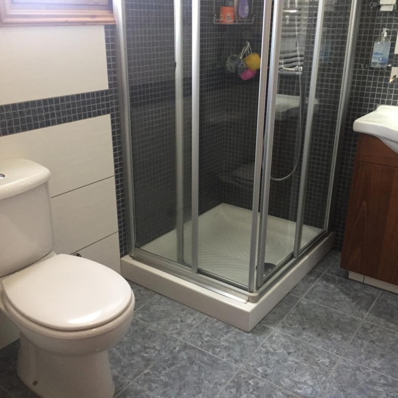 The shape of the wooden roof has created a big space, which is now used as storage but it can also be used as a future bedroom, because there is a window and a metal foldable stair. The down section consists of a spacious room (49,5 sqm) which is now used as certified with full licenses beauty salon, it includes a shower, a toilet and an A⁄C and in the future it can be used as a large bedroom.
