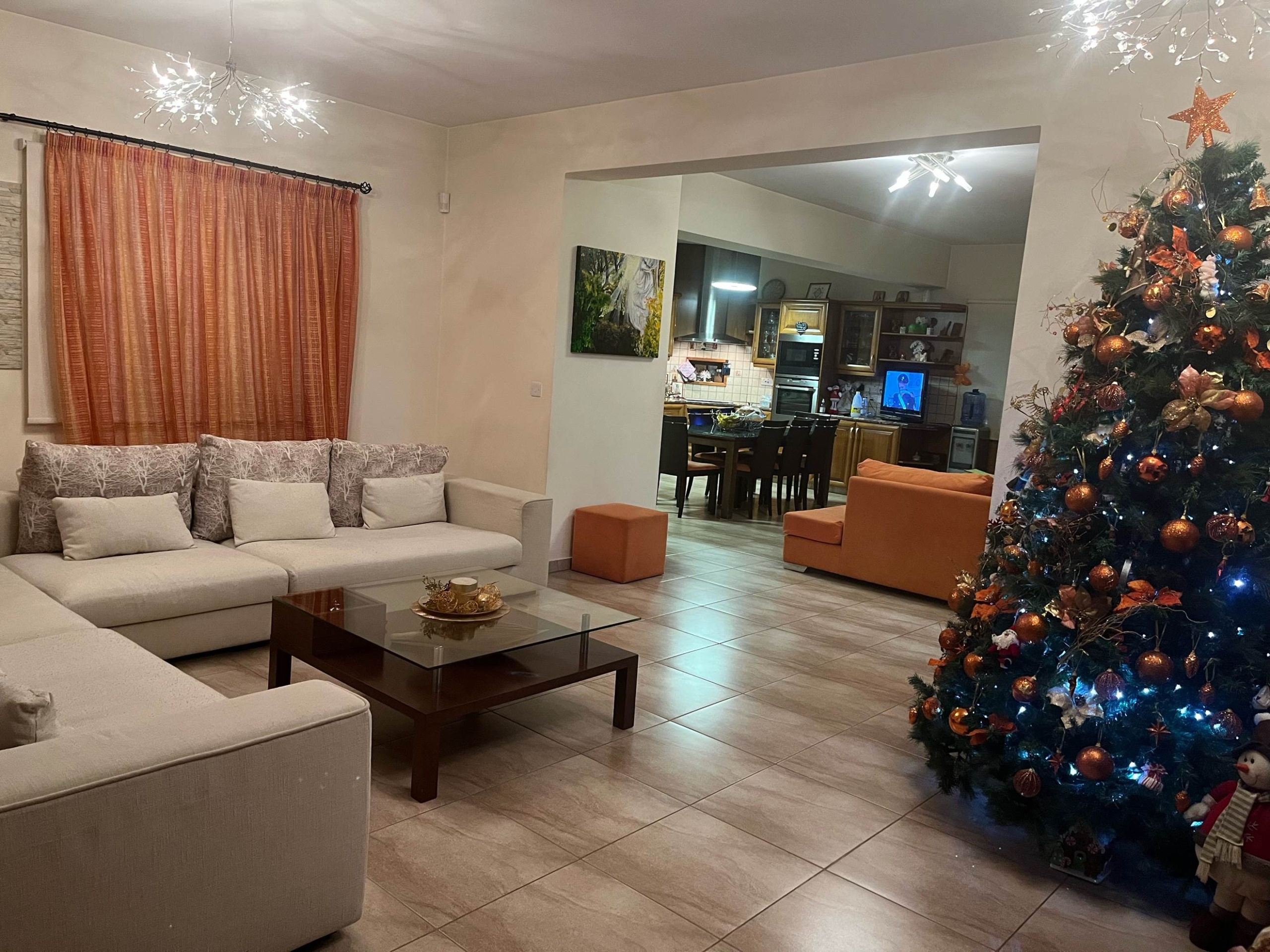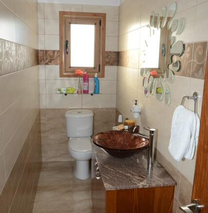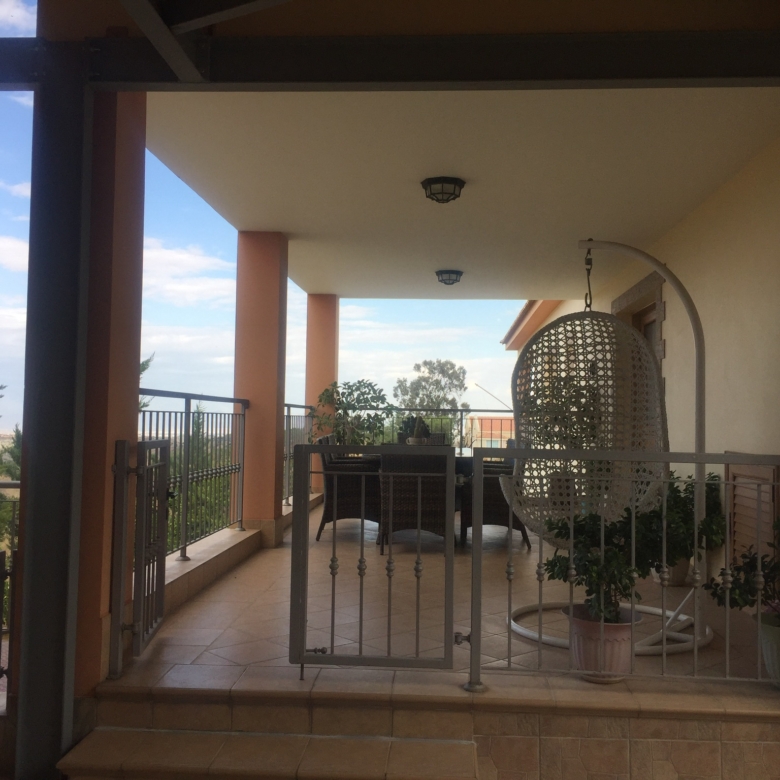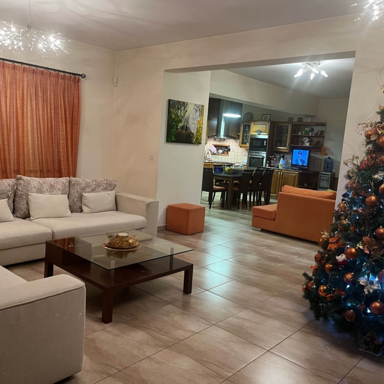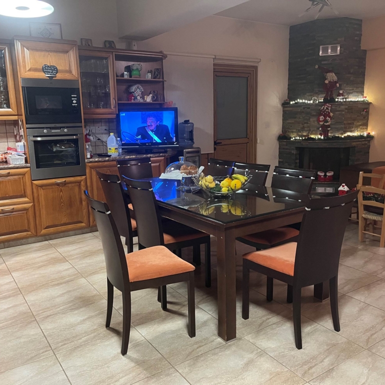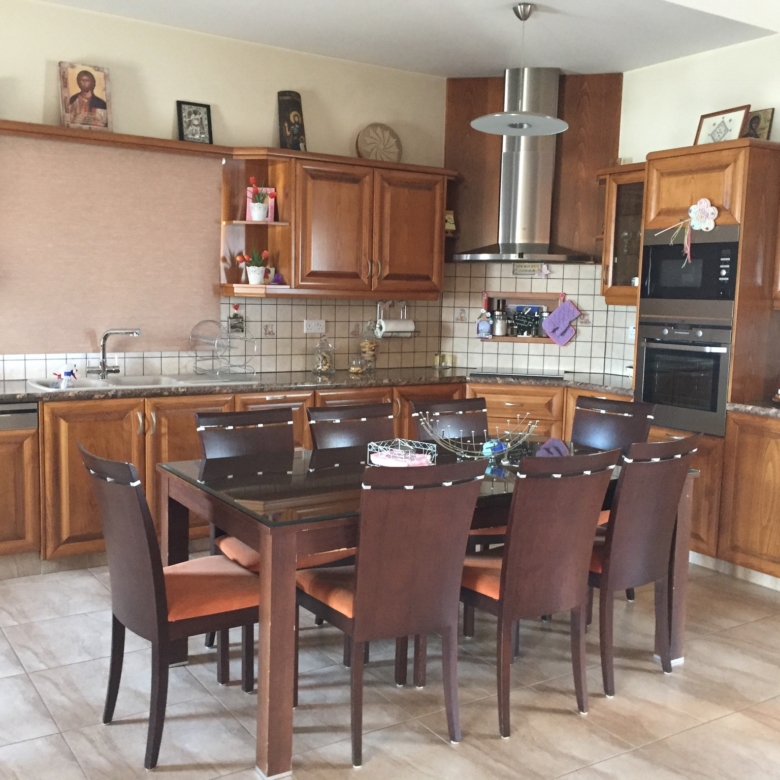 The kitchen is 45 sqm and the living room is 24 sqm. The main bathroom has as Jacuzzi and a toilet and there is one more toilet for guests. The upper section has also an airy, covered veranda of 22 sqm offering breath-taking views of Nicosia.There is also a pergola (60sqm) with barbeque station and a bar.