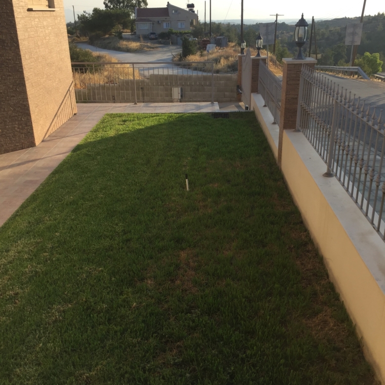 There is grass in the front garden and in the back garden there are many trees and a big wood storage. The property offers the future opportunity of constructing a swimming pool. The property size is 520 sqm and the whole land size is 1897 sqm. Also included is a full photovoltaic system.