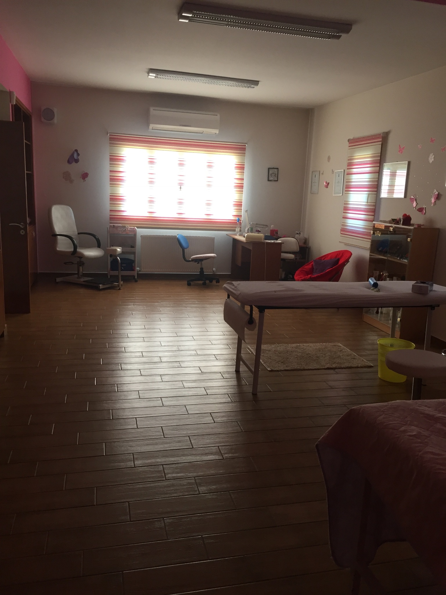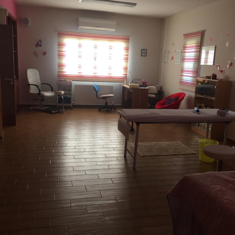 The shape of the wooden roof has created a big space, which is now used as storage but it can also be used as a future bedroom, because there is a window and a metal foldable stair. The down section consists of a spacious room (49,5 sqm) which is now used as certified with full licenses beauty salon, it includes a shower, a toilet and an A⁄C and in the future it can be used as a large bedroom.