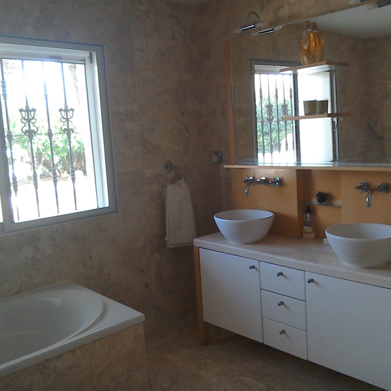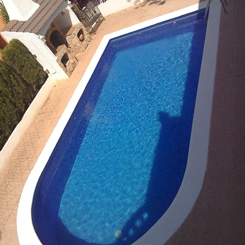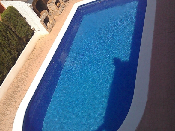 The outdoor spaces of this villa are equally impressive, designed for ultimate relaxation and enjoyment of the Mediterranean climate. The large, family-sized swimming pool is a focal point, inviting refreshing dips on warm summer days and providing a perfect setting for family fun. Surrounding the pool area are spacious terraces, ideal for sunbathing or setting up comfortable lounge areas. The well-established plot is a gardener’s delight, adorned with an abundance of thriving fruit trees, offering a taste of the local bounty.
