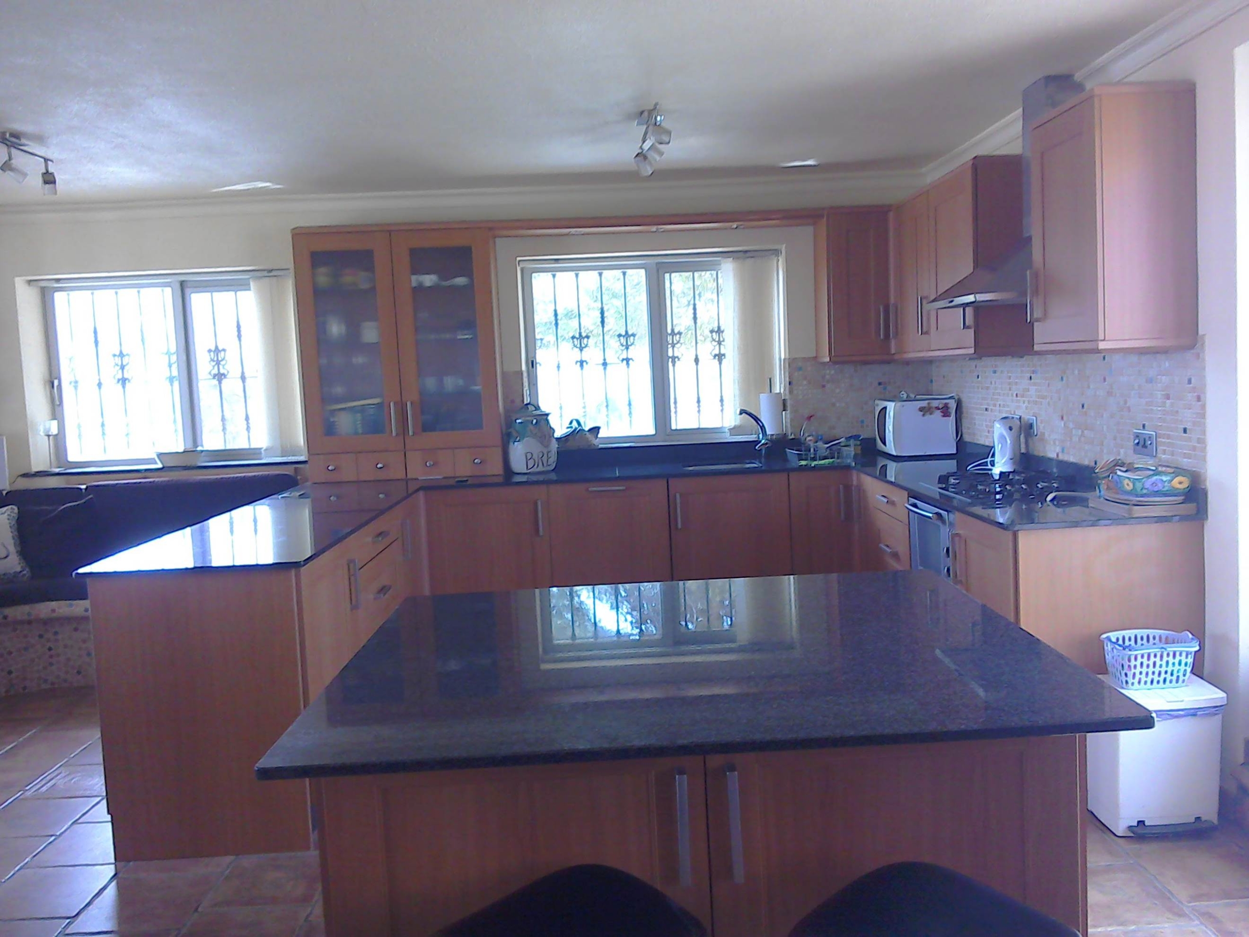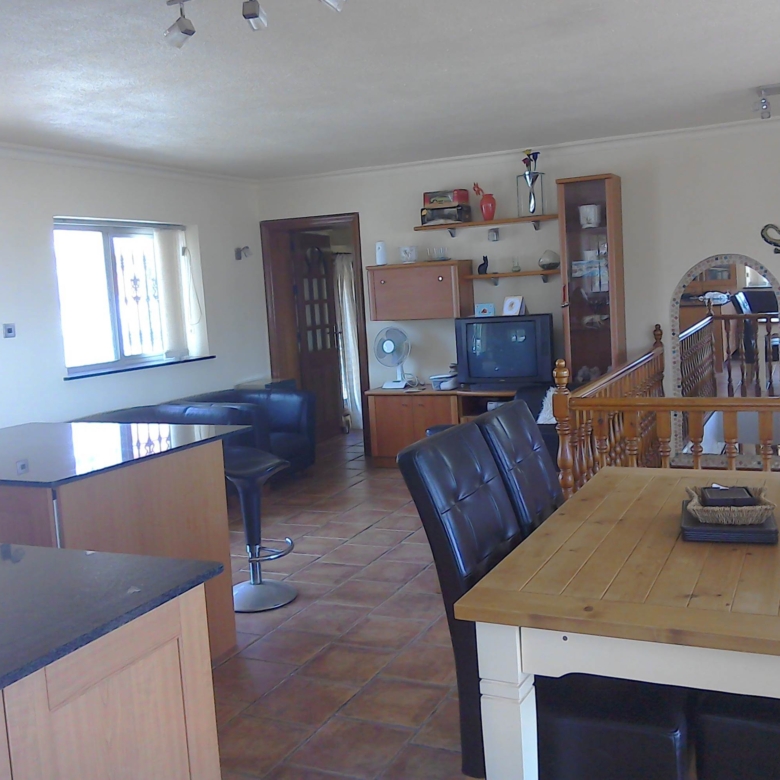 Ascending an elegant open-tread wooden return staircase, you are transported to the true masterpiece of this villa: an amazing open-plan living and dining area seamlessly integrated with a fully fitted, high-specification kitchen. This expansive space is designed for both grand entertaining and comfortable family living, offering a remarkable blend of functionality and aesthetic appeal.