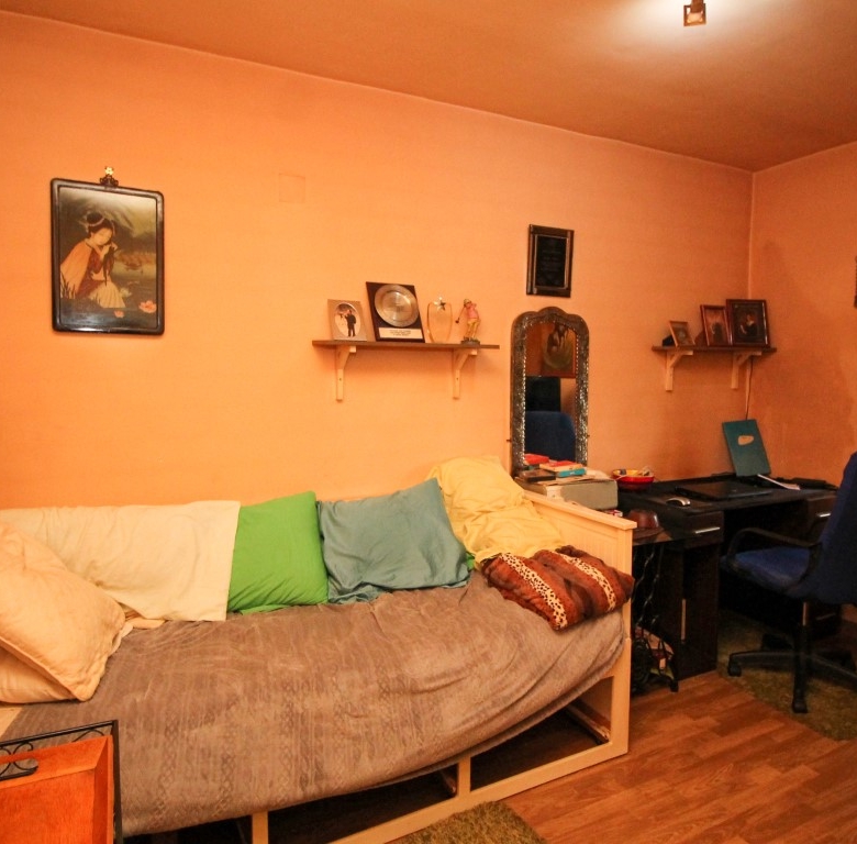 * Private Bathroom: A dedicated bathroom serves the two bedrooms in the apartment.