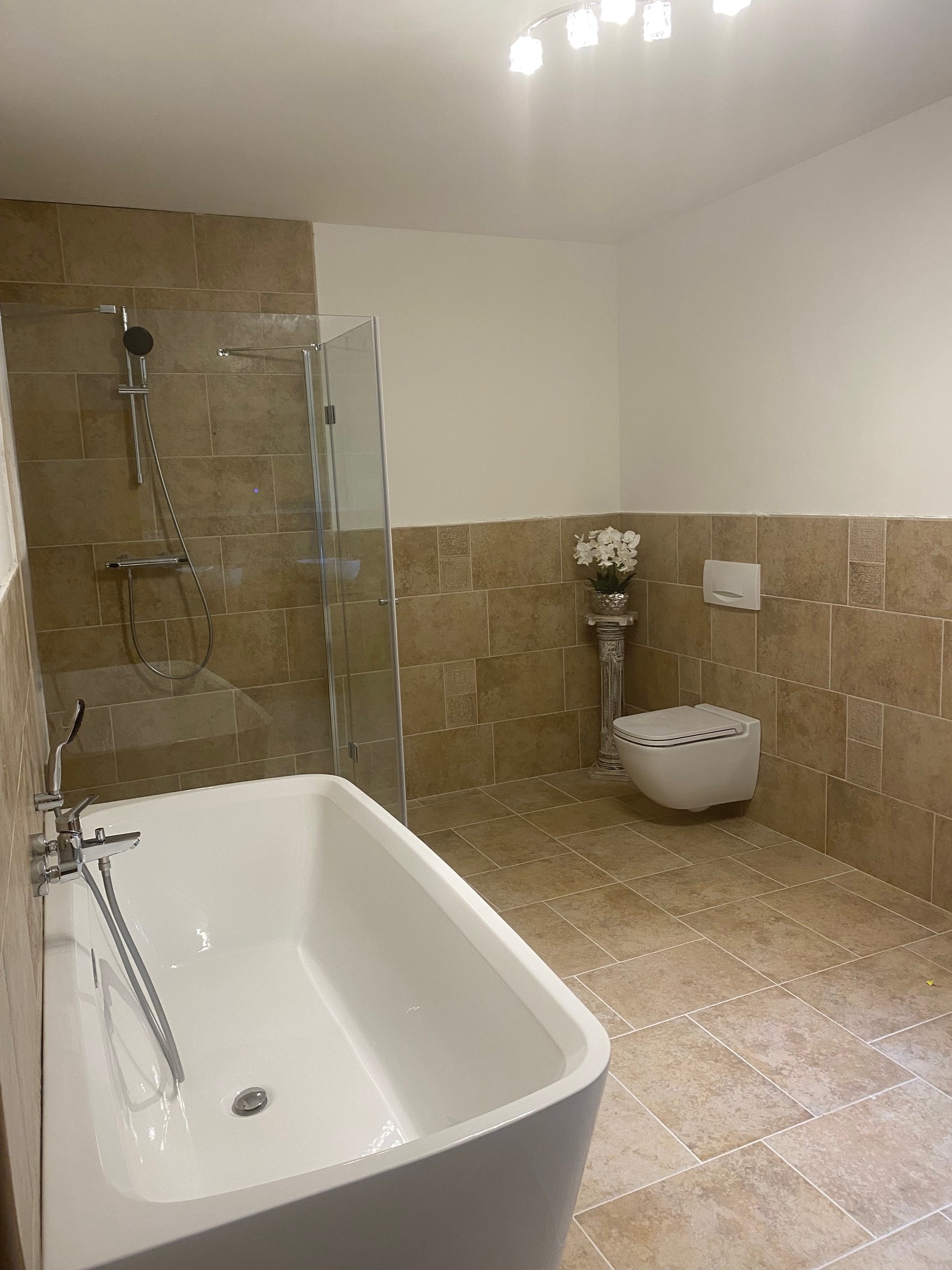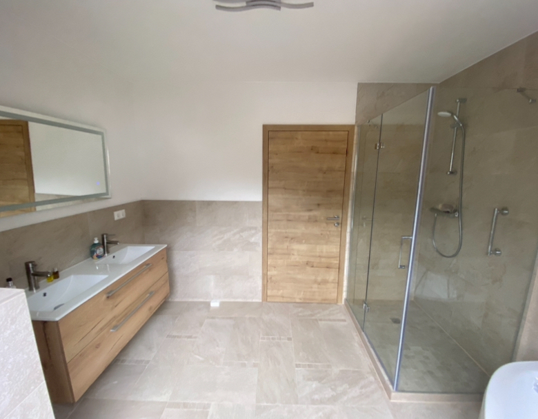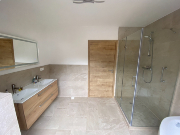 The home’s scale is truly impressive, featuring a total of 16 rooms, including five bedrooms, providing an abundance of space for family, guests, or a variety of uses. The property’s bathrooms have been renovated with an eye for luxury and functionality. There are two large, newly renovated luxury bathrooms, both equipped with a full bath, a separate shower, and a double washbasin. Additionally, there is a separate shower room and a separate WC with a washbasin, ensuring convenience for a large household.