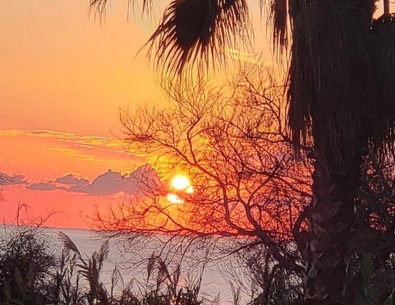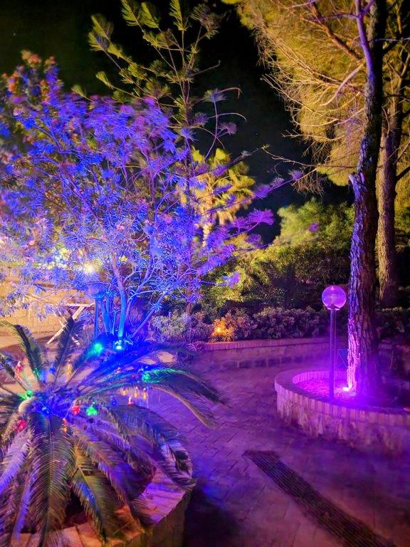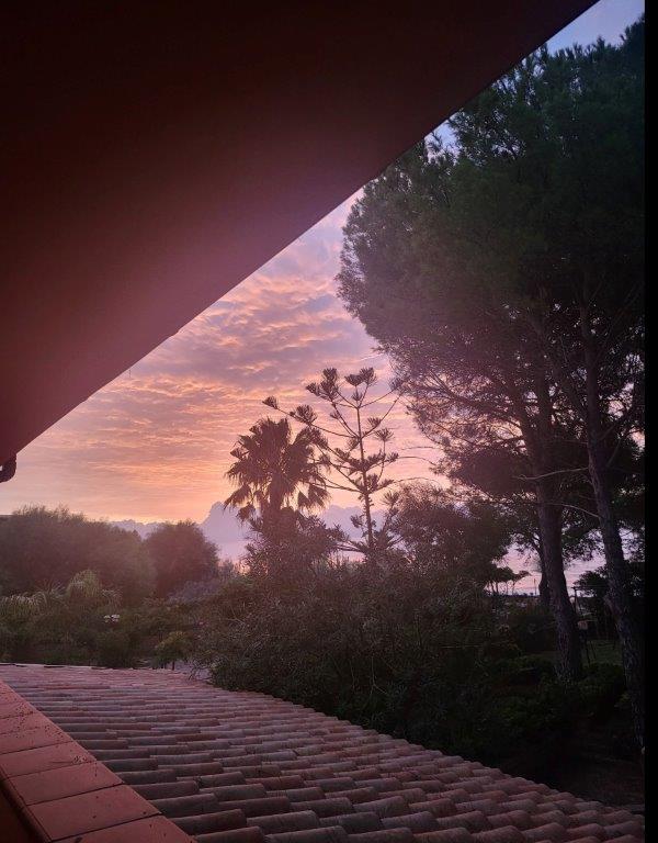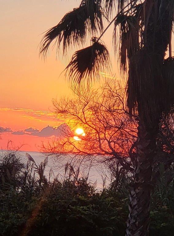 The path meanders through the gardens to a wonderful tiled wooden gazebo with a wooden table and bench, the perfect place to have breakfast overlooking the sea and watch for dolphins or barbeque in the evening.
