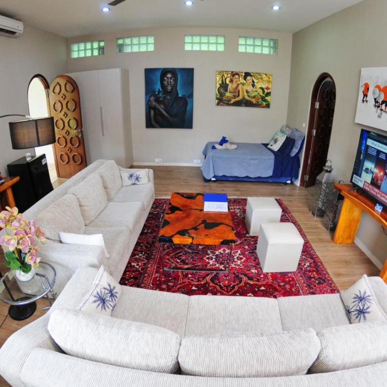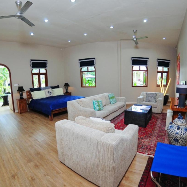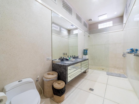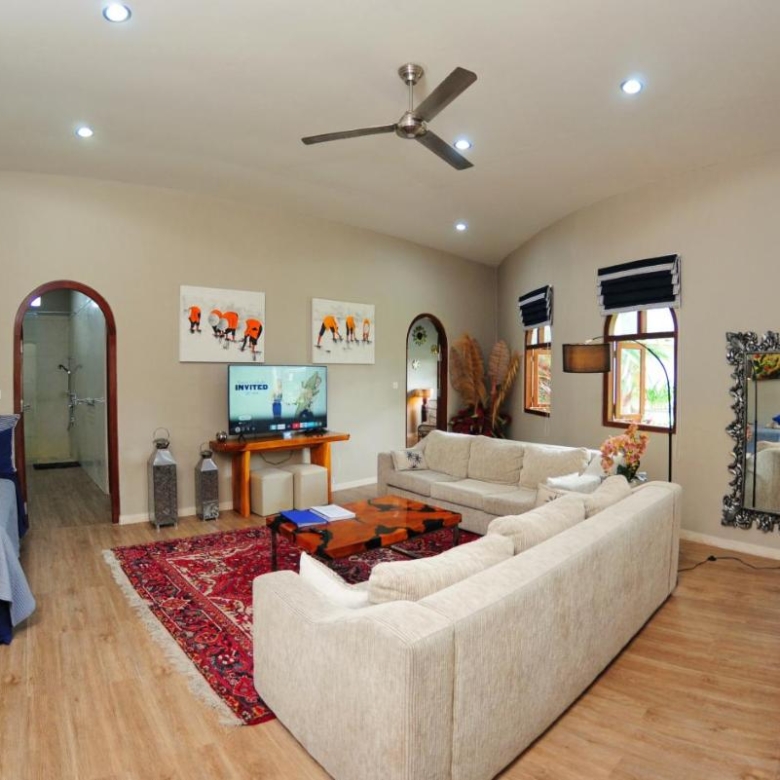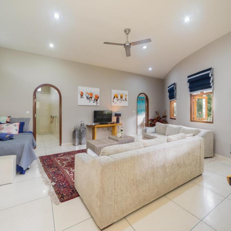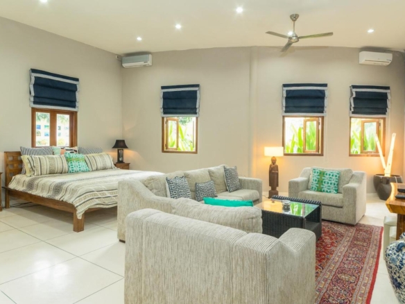 The centerpiece of Villa Costa Plenty is its magnificent 40-meter long, resort-style mineral pool, a haven of relaxation and rejuvenation. Surrounding the pool is a serene freshwater pond, home to Koi fish, turtles, and catfish sharks, creating a tranquil and captivating ambiance. The meticulously landscaped grounds feature lush tropical foliage, providing a sense of privacy and seclusion.
