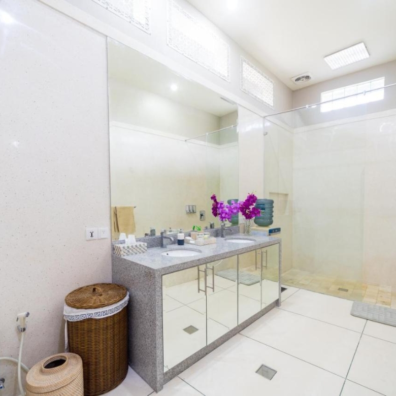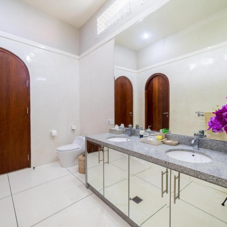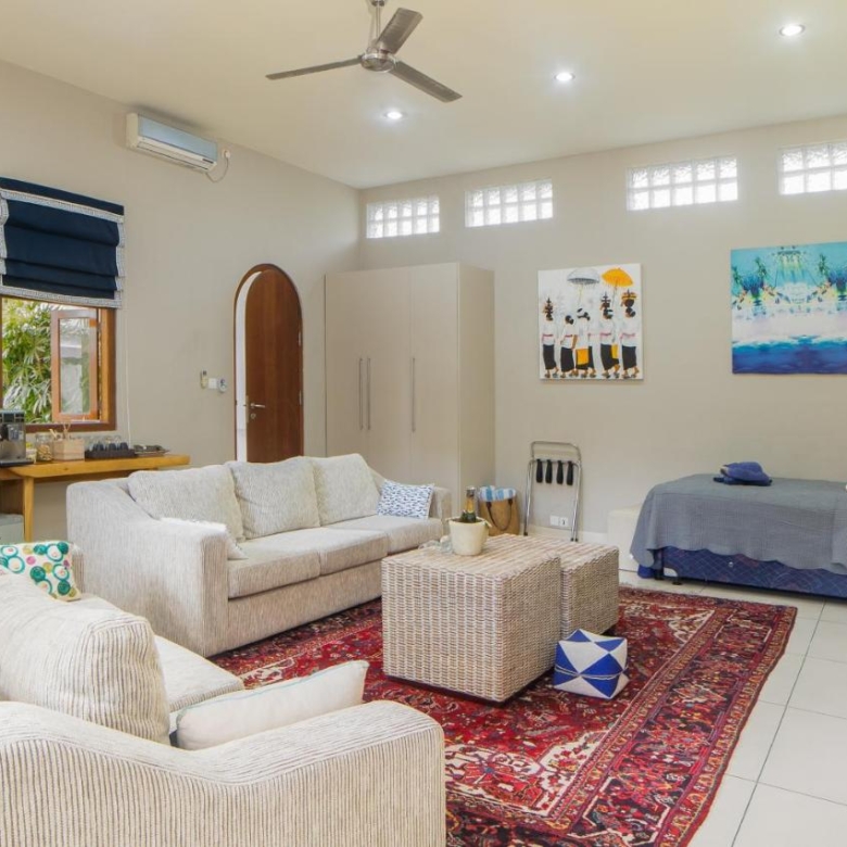 Villa Costa Plenty boasts five beautifully appointed bedrooms, each with its own ensuite bathroom, ensuring utmost comfort and privacy for guests. The rooms are equipped with modern amenities, including flat-screen TVs, DVD players, and coffee machines. Some rooms feature a seating area, perfect for unwinding after a day of exploring Bali. Complimentary toiletries and hairdryers are provided for guests’ convenience.