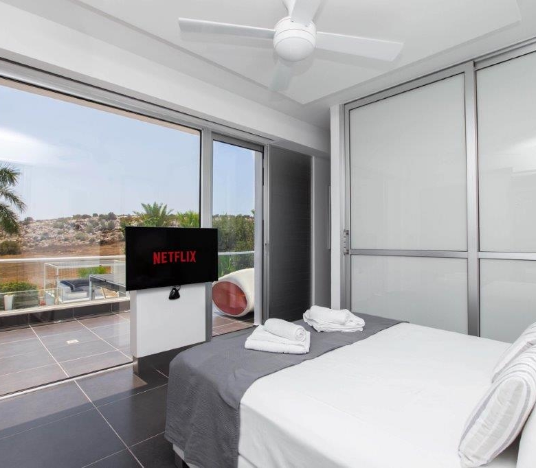 Soaring 6 meters high, the villa’s expansive lounge exudes an air of grandeur, creating an ambiance of sophisticated relaxation. As you unwind in the plush comfort of the furnishings, the gentle breeze from the Mediterranean Sea will lull you into a state of pure bliss.