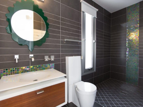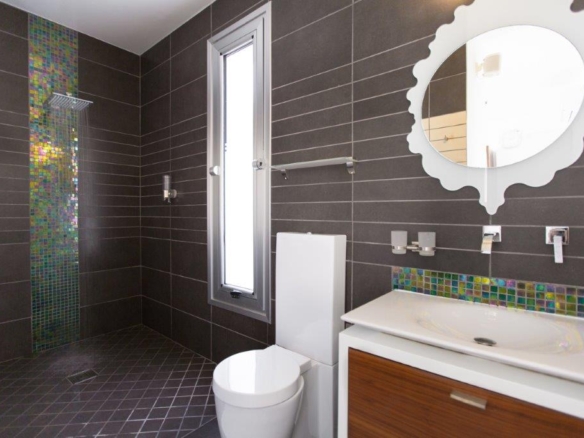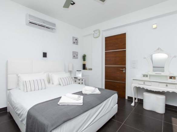 Upon entering the villa’s private walled plot, one is immediately captivated by the grandeur of its 375 square meters of internal space, seamlessly blending contemporary elegance with the warmth of traditional Cypriot design. Five lavish en-suite bedrooms grace the interiors, each adorned with bespoke furnishings and a palette of soothing hues that evoke a sense of serenity.
