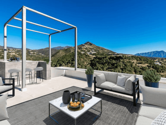 Comfort and warmth are seamlessly integrated throughout the property with underfloor heating, ensuring a cozy ambiance during cooler seasons. The attention to detail extends to the rooftop solarium, where you can bask in the sun while marveling at the captivating vistas that stretch towards the majestic La Concha mountain.