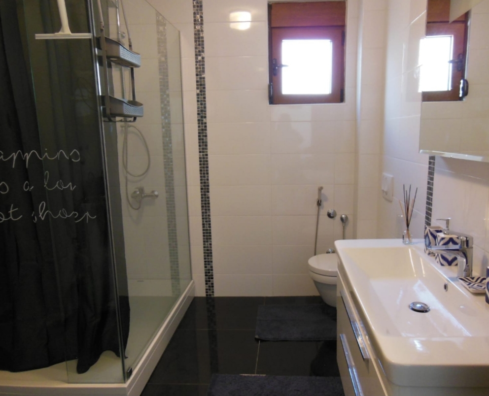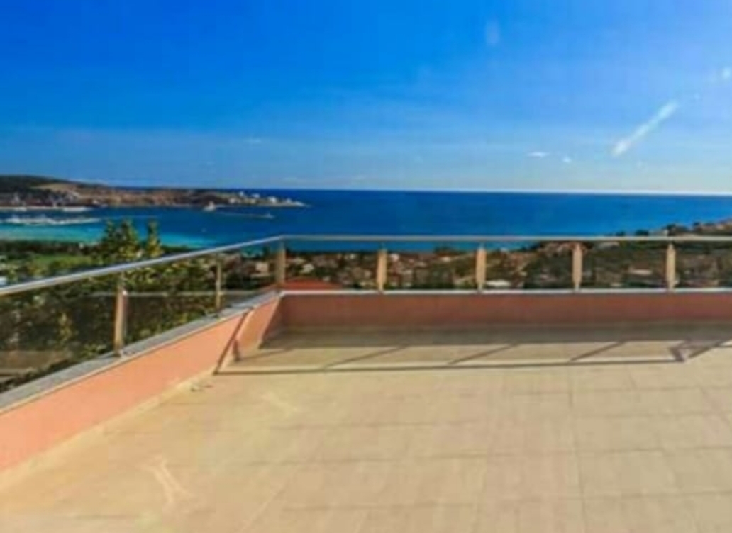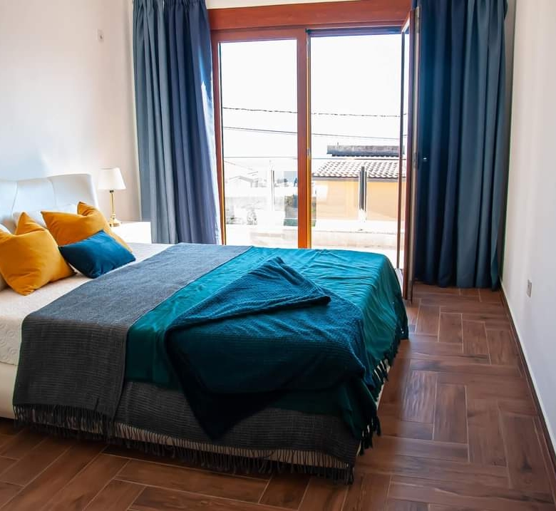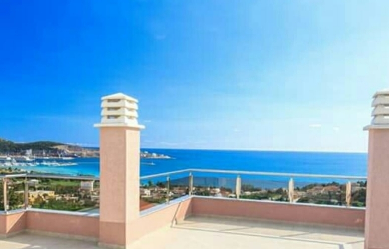 A modern day styled villa and land package now available in Susanj, Bar Montenegro that has excellent sea views just 900 meters from beach. Block is 825m2 with a decorative of fruit and olive trees. House is 500m2. Has 5 bedrooms, 4 bathrooms. With large dresser room. On roof top is self-contained unit with own kitchen and bathroom. All rooms have terraces with views. A large living space with fireplace and kitchen. Roller shutters on all windows and entrances.