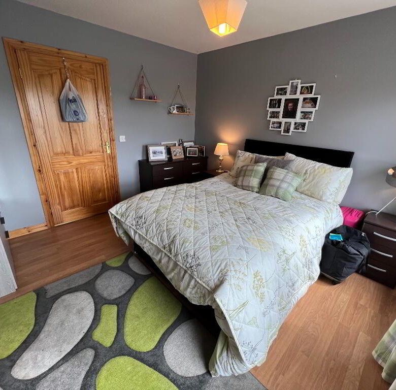 Large double bedroom with walk in wardrobe, wooden style flooring and TV point.