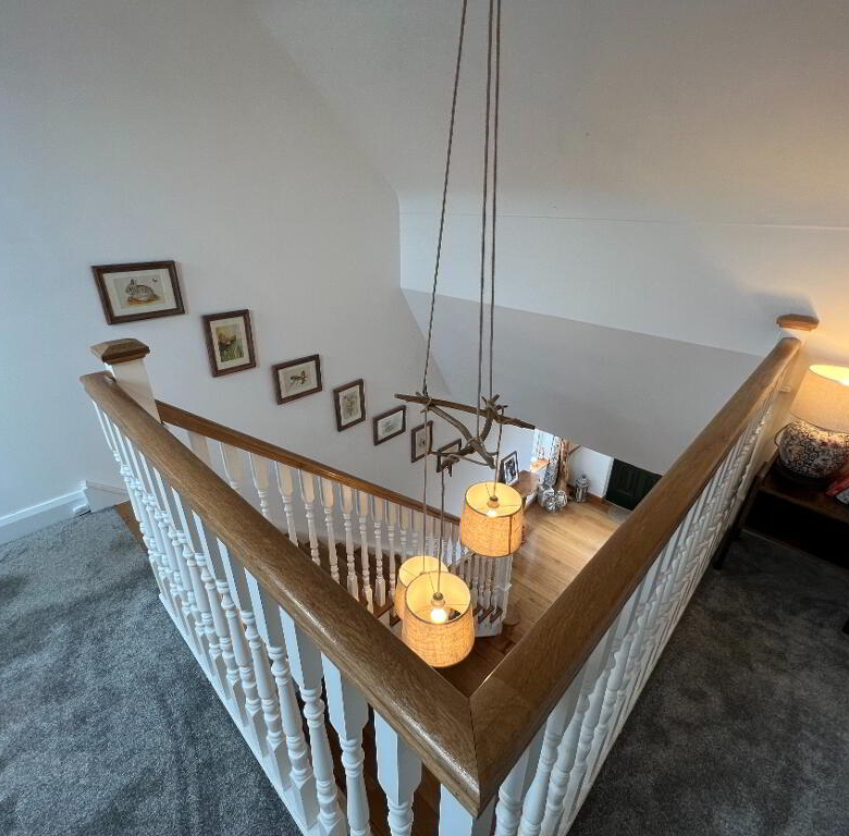 Currently used as a library, fully shelved with bookcases, carpeted flooring, sitting area and access to eves / attic space for storage.